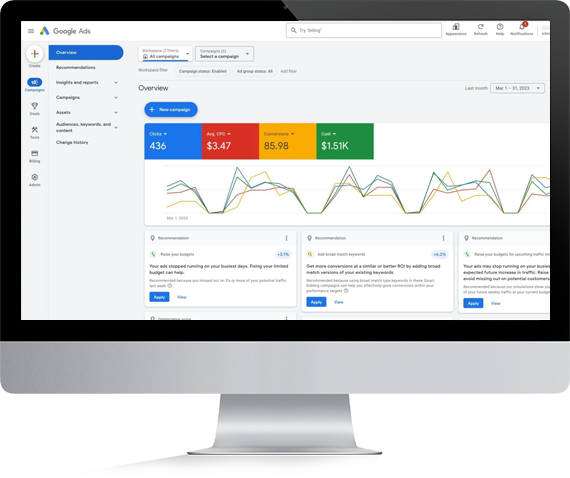 Google Ads нуди различни видови кампањи, вклучувајќи кампањи за пребарување, кампањи за прикажување, видео кампањи, кампањи за купување и кампањи за апликации. Секој тип служи за различни цели, како што се зголемување на сообраќајот на веб-страницата, промоција на производи или зголемување на инсталациите на апликации.